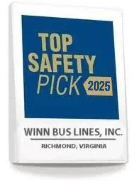 In 2025, Winn Bus Lines was one of the safest motorcoach carriers in the United States. Our safety record remains in THE TOP ONE HALF OF ONE PERCENT of all motorcoach transportation companies NATIONWIDE!